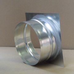 Horganyzott acél 90°-os csatlakozó csonk sík felületre, kör keresztmetszetű merev légcsatornák, flexibilis csövek, csatlakozó dobozok, kör csonkos rácsok, stb. csatlakoztatásához,kör vagy négyszög alaplappal.